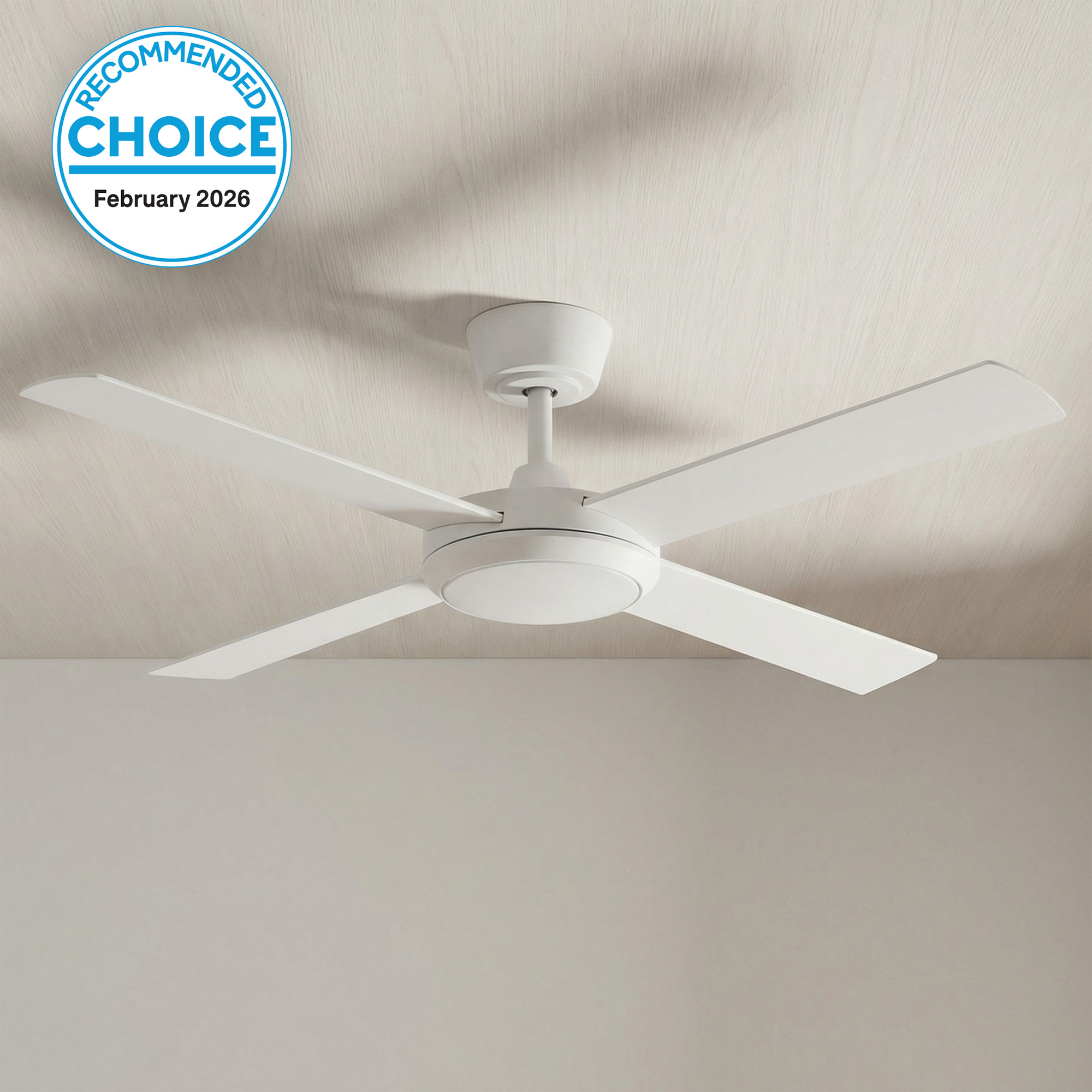The fan’s quiet airflow and quality of the light have also make it a CHOICE Recommended Ceiling Fan for 2026.