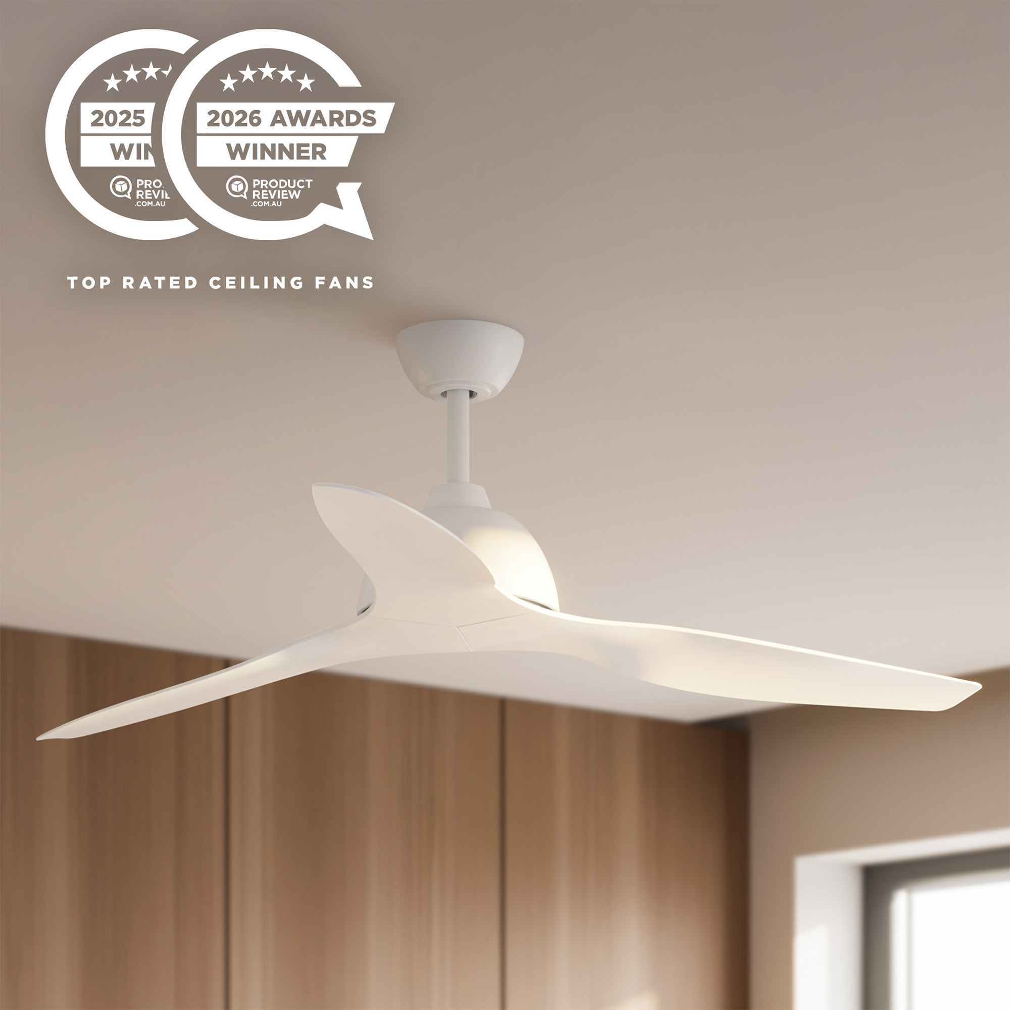 As well as the modern simplicity of the design – the fan has all the features you would expect. It operates quietly particularly on the lower speeds, which are gentle and well suited to a bedroom. Its another fan that has many positive reviews – both on our site and Productreview. These positive reviews made the fan a 3 time ProductReview.com.au award winner in 2025, 2025 and now 2026 highlighting its proven performance and popularity across Australian homes.