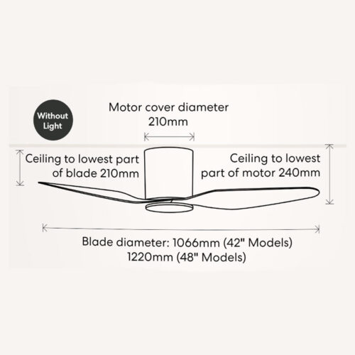 | Ceiling to Blade Drop | 210mm (240mm to base of motor) |