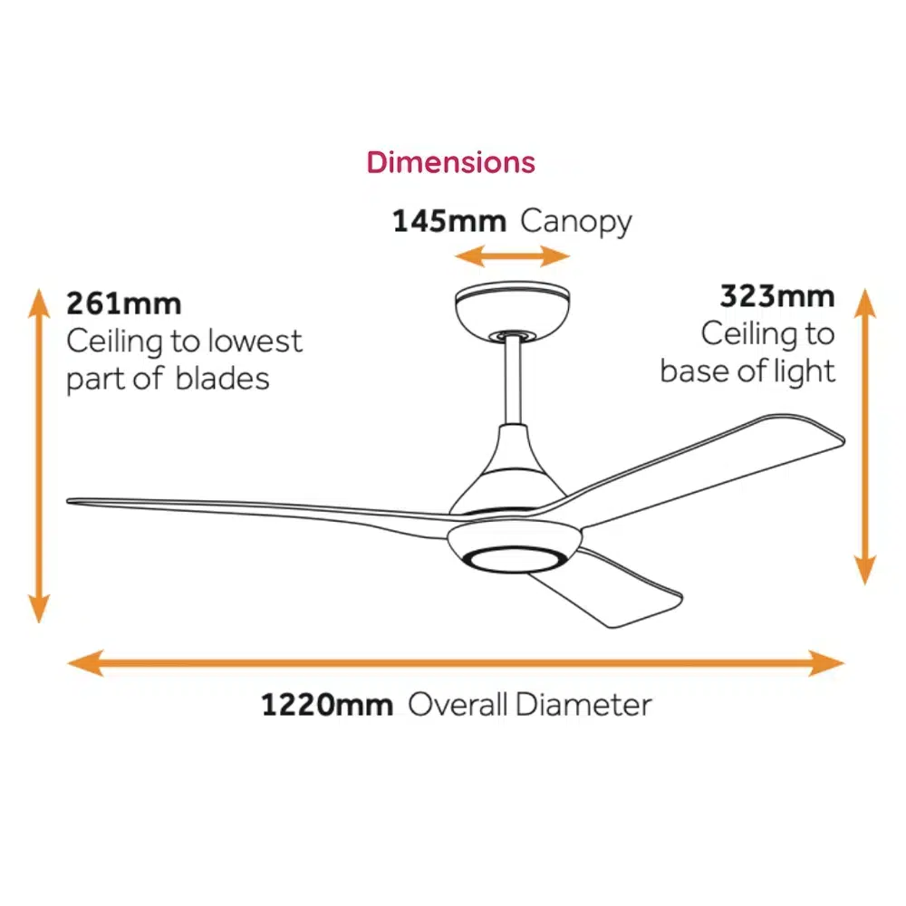 | Ceiling to Blade Drop | 261mm (323mm to base of light) |