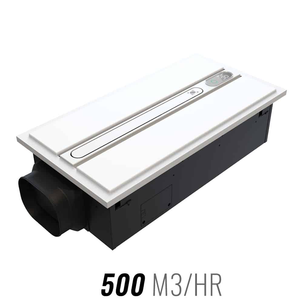 Requires a minimum of 200mm ceiling clearance to maintain proper ventilation and fit. The fascia (trim) must be flush with the ceiling for a clean finish.
