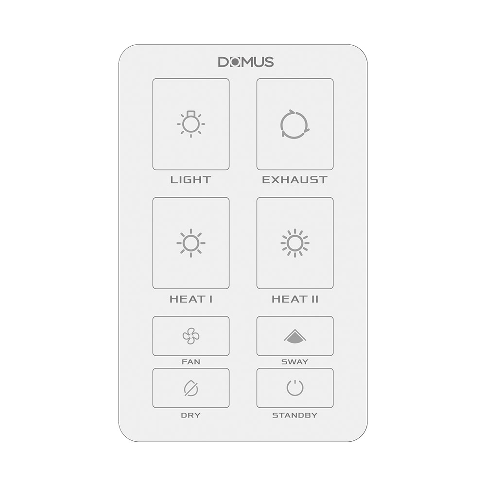 • Functions include: Heater, Exhaust Fan, Circulating Fan, Dry Heat, Sway, Light