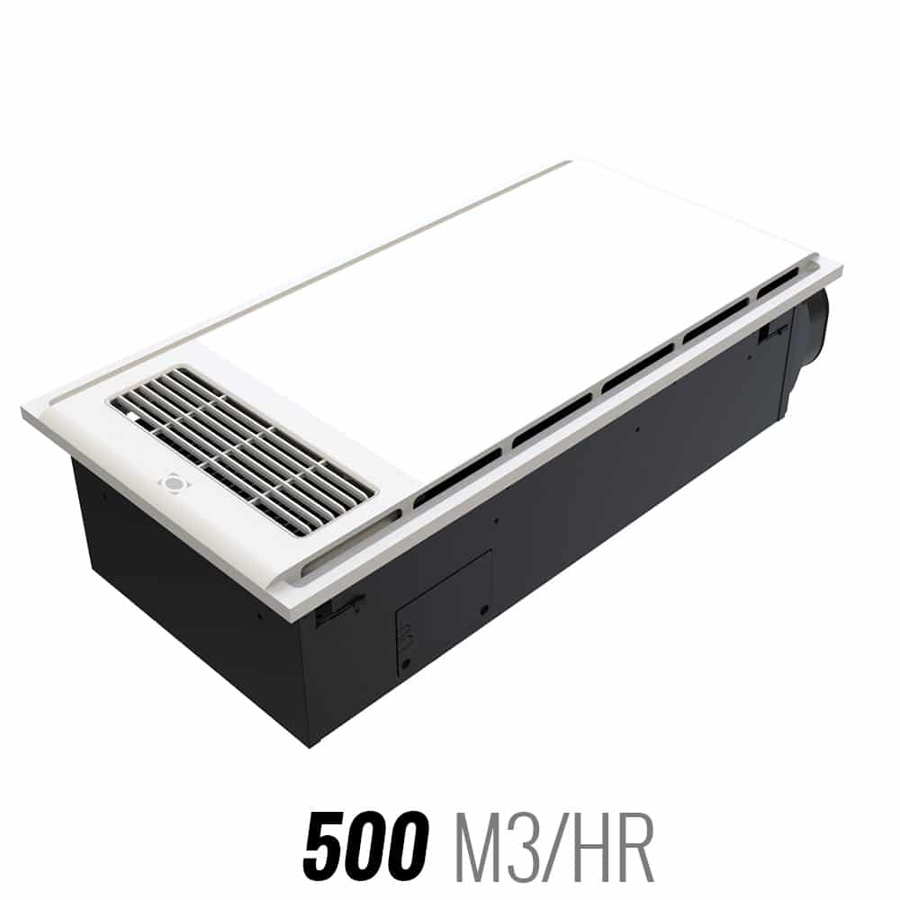 Sleek and compact, it combines a powerful heater, high-performance 500m3/hr exhaust fan, circulating fan, and a 25W tri-colour LED light (3000K, 4000K, 5000K) in one slimline design. Equipped with a 5-Gang Rocker Bakelite Wall Switch, compatible with most previously installed and existing bathroom switches, it allows for easier and quicker installation due to common screw holes. The unit also includes a 2-hour auto shut-off for added safety. It comes with a 5-year in-home warranty for added reliability.