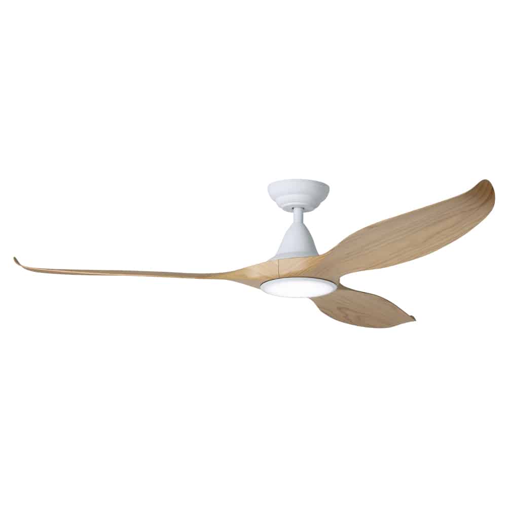 Eglo Noosa DC Ceiling Fan with LED Light – White with Blackbutt Blades 60″