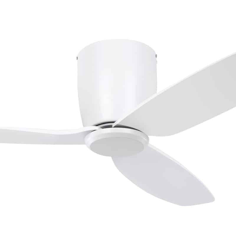 Modern and sleek, it has a low-profile design for homes with low ceilings. Crafted with non-rust, UV-resistant blades and steel housing for longer performance.
