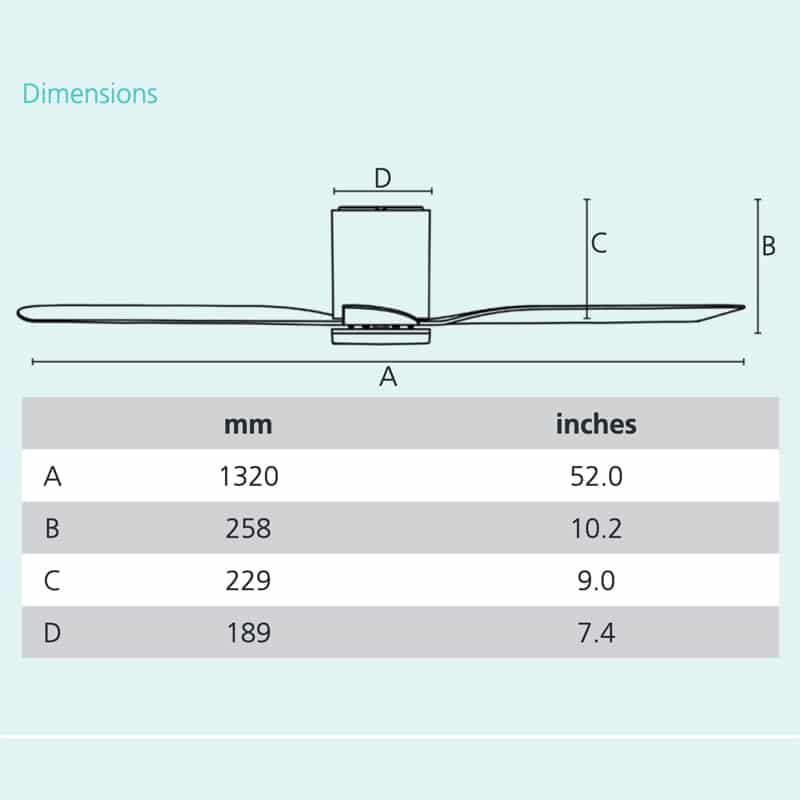 | Ceiling to Blade Drop | 229mm (258mm to base of light) |