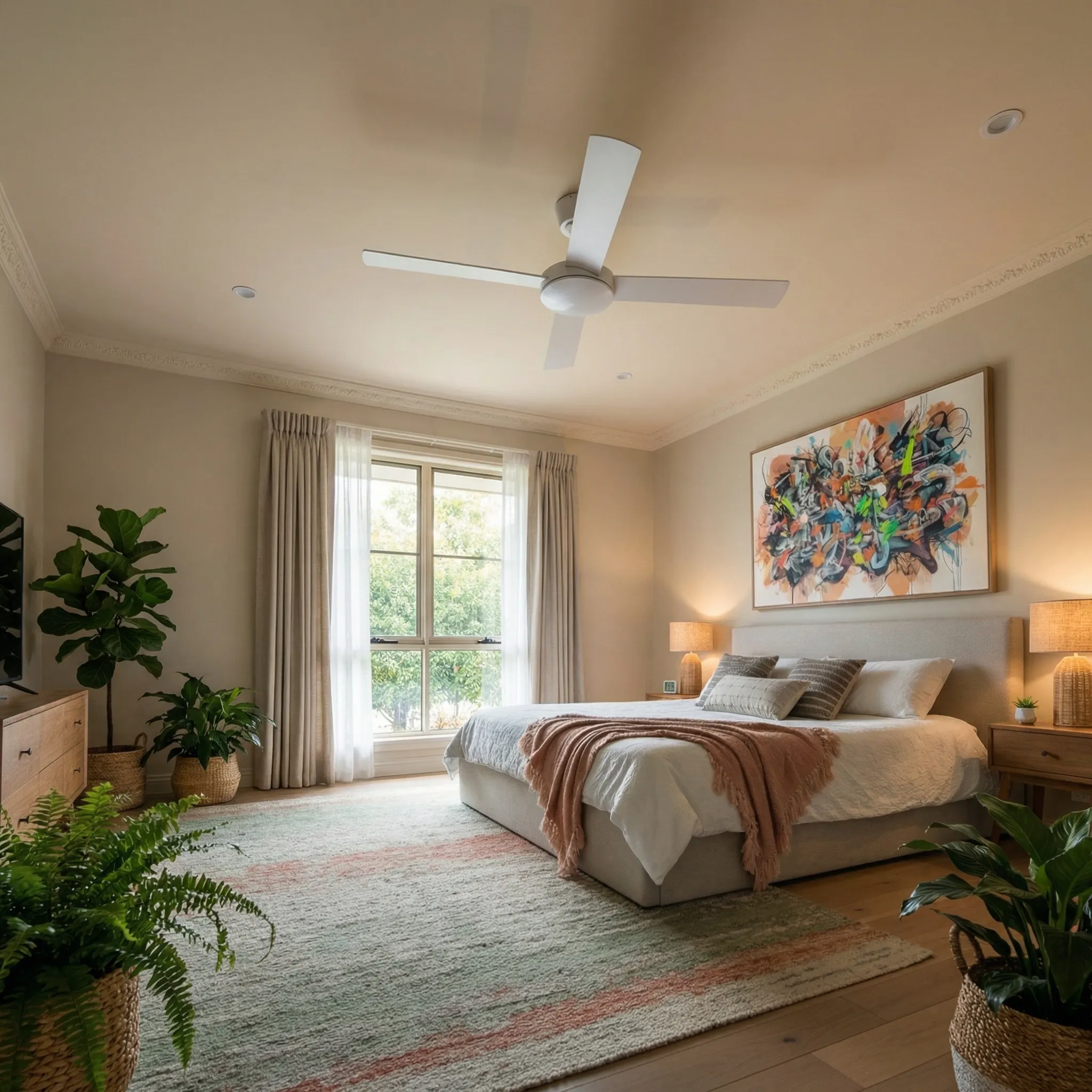 The Fanco Eco Silent Pro delivers exceptional air circulation across six speeds, reaching a powerful maximum airflow of 15,388 m³/hr at 195 RPM. Even at its lowest setting, it provides a consistent 4,479 m³/hr flow while consuming a mere 1.8W. This range ensures high-volume cooling for hot days and gentle, energy-efficient movement for quiet nights.