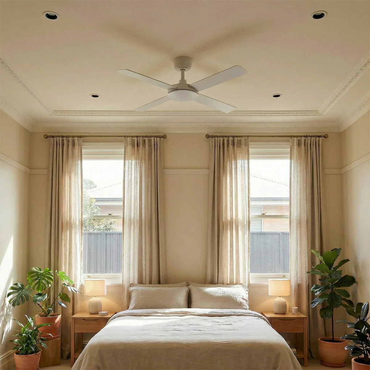 Year-round comfort with the included smart control and remote, featuring 6-speed settings, programmable timer (1H, 4H, or 8H) for effortless scheduling. Beyond just cooling, the Summer/Winter reversible function allows you to switch blade direction, optimising airflow for every season and improving energy efficiency throughout the year.