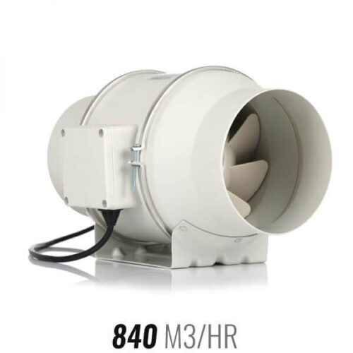 The Fanco SM range is a capable range of mixflow inline fans which are incredible value for money. Typically these fans are used for exhaust applications, but can serve other purposes as well. This fan comes installed default on the high speed which boasts an impressive extraction rate of 840 m3/hr. If you wish to switch to the lower speed, the fan must be rewired to the low speed terminal, which will require the assistance of an electrician. This unit does not come with a speed controller.