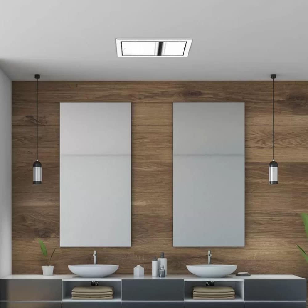 Heat lamp featuring Halo Heat Technology and an IP44 rating. Easily switch between lighting modes with a simple toggle. Smart memory function recalls your last selected setting. The LED automatically turns off when the heat lamps are active, enhancing longevity.
