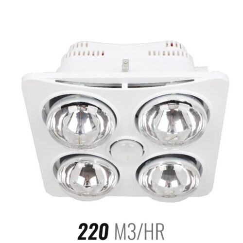 The Mercator Ardene Duo Exhaust Fan is an excellent performing fan suitable for bathroom and ensuite applications. The Ardene is constructed with a high quality ball bearing motor to ensure longevity, featuring 4 x 275w, E27 heat lamps and 1 x 42w R63 lights. This bathroom exhaust fan includes 1.5m of flexible ducting and a duct cover, along with a 4 gang switch to allow for seperate control of the heating, light and fan functions on the unit.