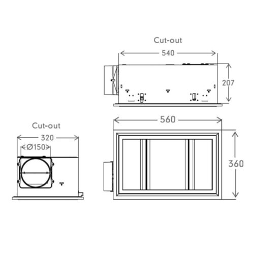 This exhaust fan houses a powerful 60 watt motor. With a 500 m3/hr capacity and its modern 3 panelled facing, this 3-in-1 model attends to your bathroom’s heating, lighting and exhaust needs. View all technical specifications below: