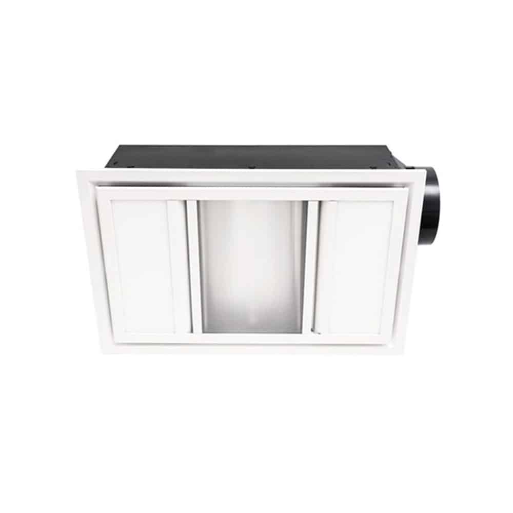 This 3 in 1 exhaust fan features a 800W linear heat lamp for instant heating, x2 11W CCT LED panels (3000K Warm White, 4000K Neutral White and 5000K Cool White) and is side ducted with included draft stopper. This updated model features a CCT (colour changing technology) LED light, allowing you to select from warm, natural or cool light.