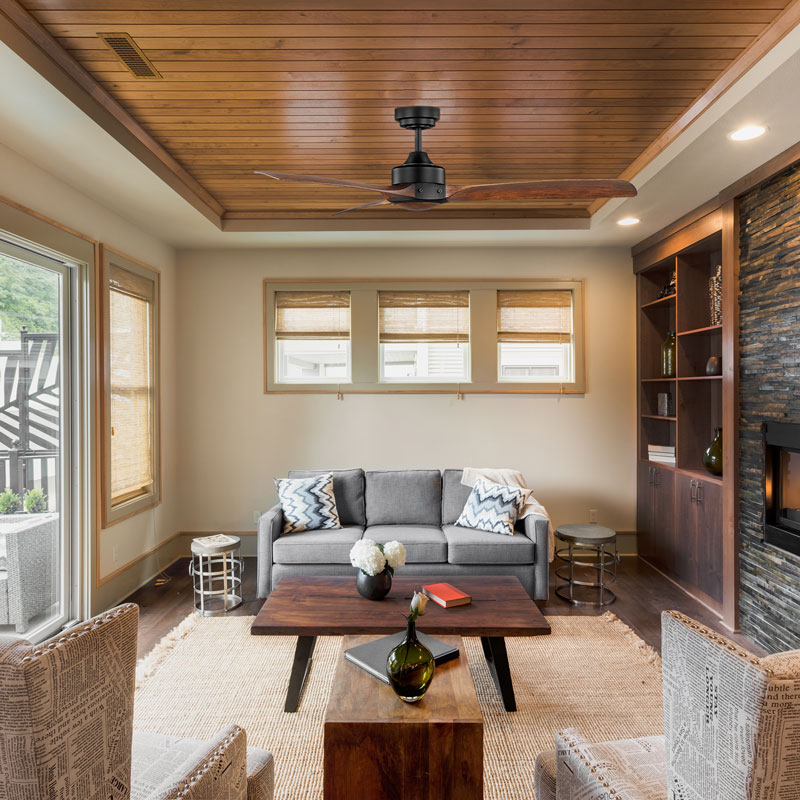 It has an ABS moulded 3-blade design suitable for indoor installation. The remote includes a reverse mode and timer function (1hr, 4hrs, 8hrs). It also has SMART Wi-Fi compatibility and Voice Control.