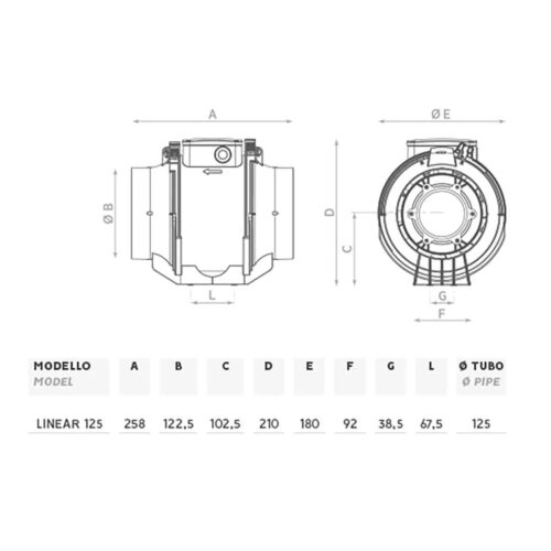 The Oerre Linear is a high-performance mixed flow fan designed to efficiently move air and fumes through ducts. It is suitable for a wide range of applications, from residential homes to commercial buildings and industrial facilities. This fan comes installed with three speeds which boasts maximum capable extraction rate of 350 m3/hr. By default it is set to high speed, if you wish to switch to the lower speed, the fan must be rewired to the low speed terminal – which will require the assistance of an electrician. This unit does not come with a speed controller. The Oerre Linear is designed for easy installation and maintenance. The central unit can be quickly released for cleaning or replacement, and the terminal box is conveniently located on the unit.