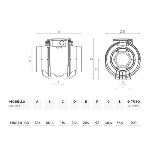 The Oerre Linear is a high-performance mixed flow fan designed to efficiently move air and fumes through ducts. It is suitable for a wide range of applications, from residential homes to commercial buildings and industrial facilities. This fan comes installed with three speeds which boasts maximum capable extraction rate of 500 m3/hr. By default it is set to high speed, if you wish to switch to the lower speed, the fan must be rewired to the low speed terminal – which will require the assistance of an electrician. This unit does not come with a speed controller. The Oerre Linear is designed for easy installation and maintenance. The central unit can be quickly released for cleaning or replacement, and the terminal box is conveniently located on the unit.