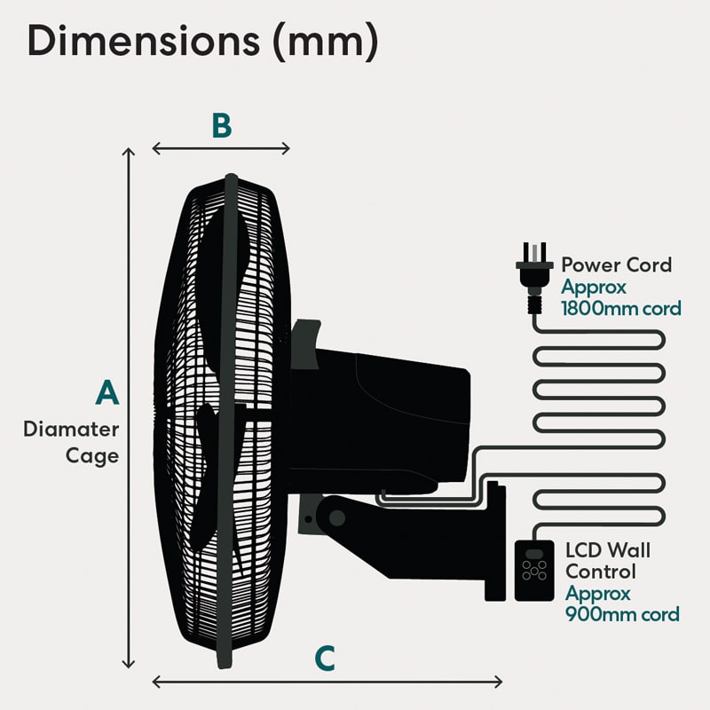 • Great for gyms and cafes with oscillation functionality controlled via wired controller
