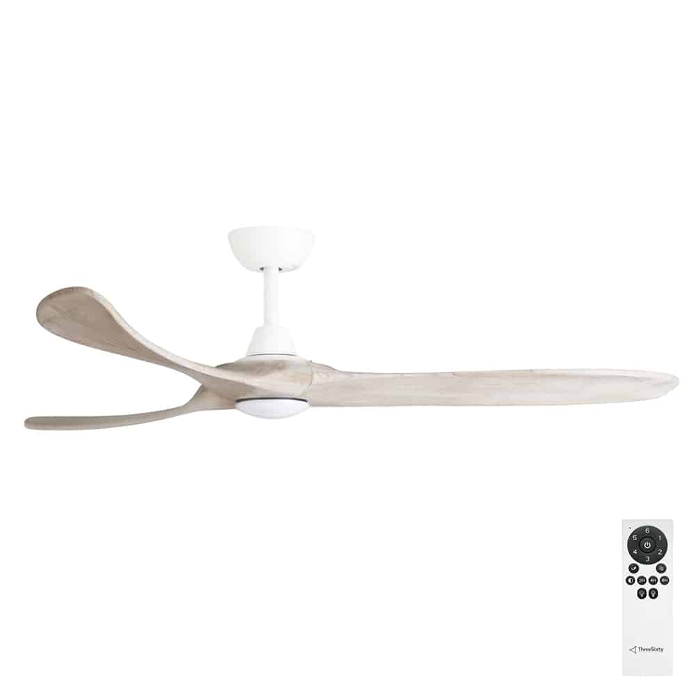 three-sixty-kirra-dc-60-inches-white-weathered-oak-with-remote-with-light Three Sixty Kirra DC Ceiling Fan with LED Light – White with Weathered Oak Blades 60″
