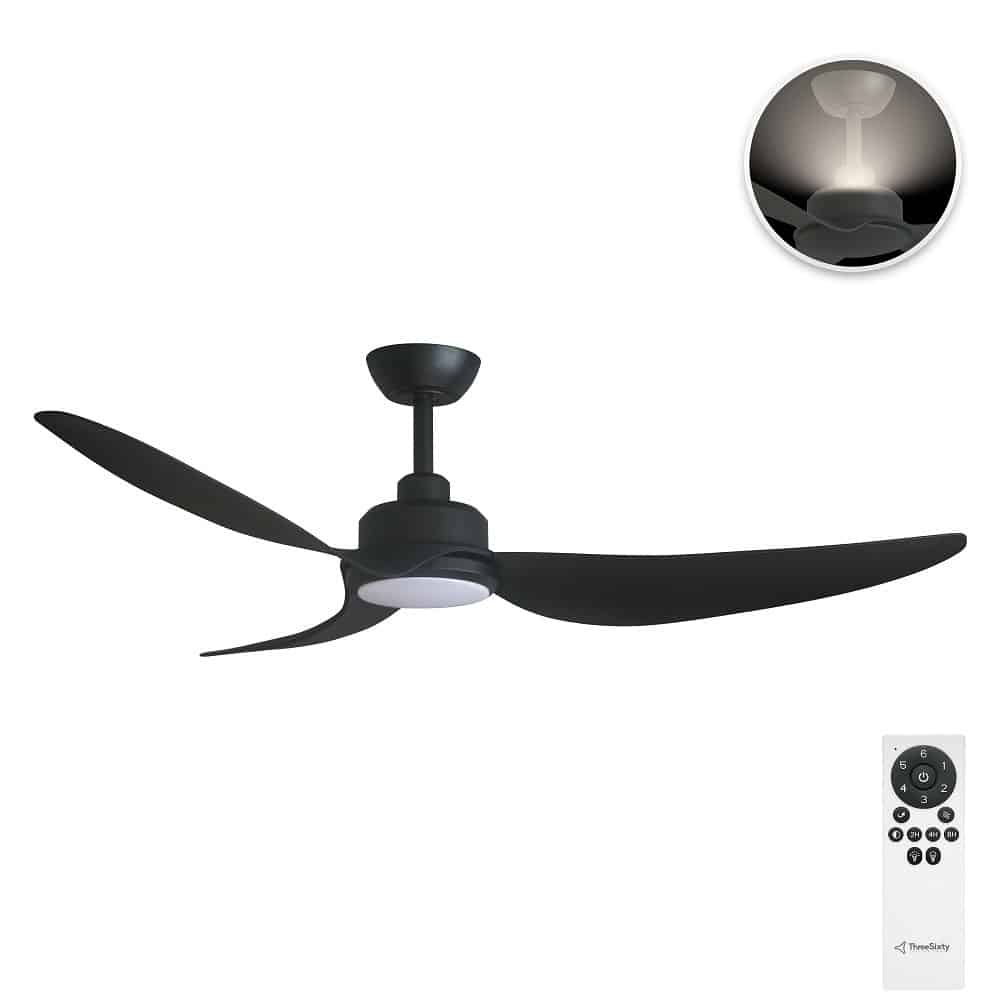 The Three Sixty Trinity features aerodynamic fluted polymer blades. It also has a timer function with 1, 3, 6, or 8-hour options.