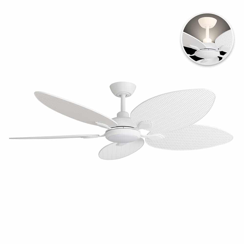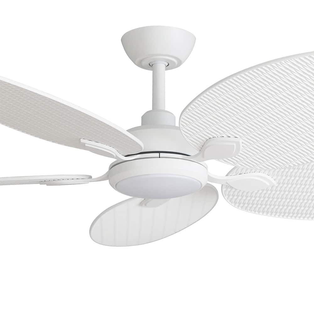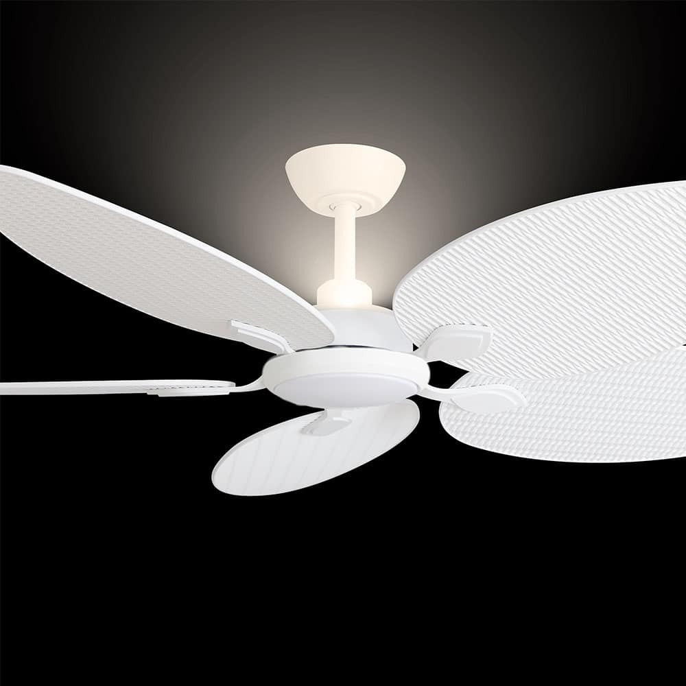 Inspired by the graceful beauty of palm leaves, this product brings a touch of tropical elegance to any space, whether indoors or in covered outdoor areas. Its reversible polymer blades showcase a palm leaf design on one side and a rattan or bamboo finish on the other, offering both durability and stylish appeal.