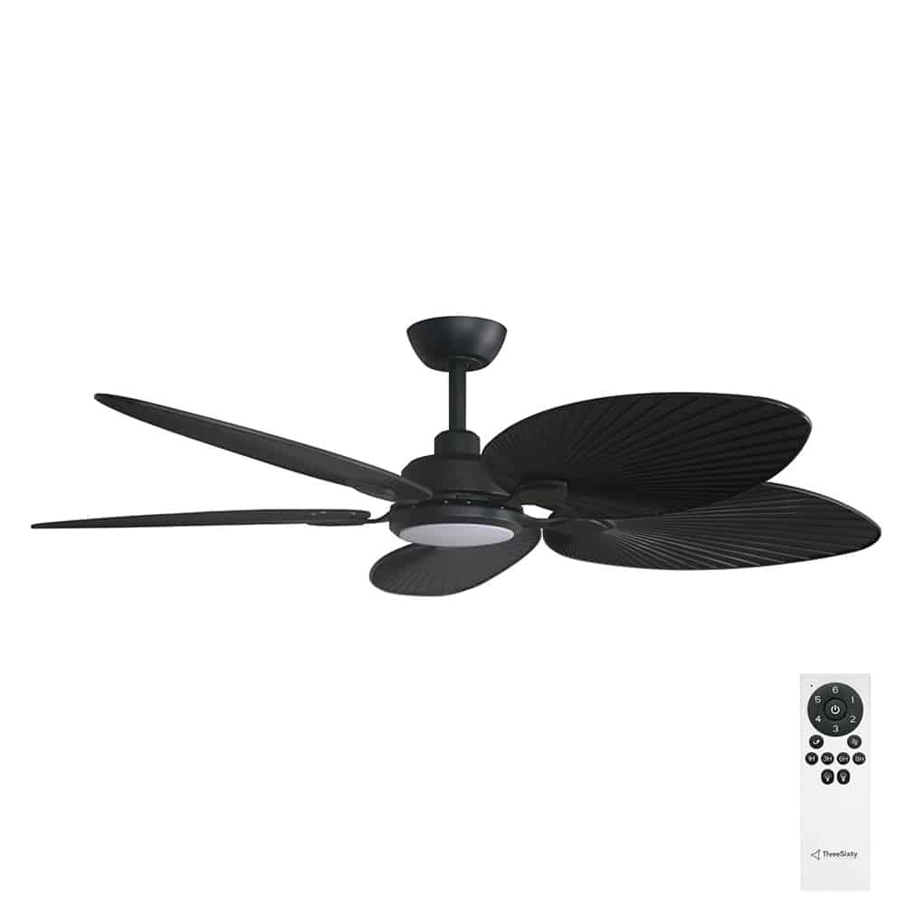 Inspired by the graceful beauty of palm leaves, adds a touch of tropical sophistication to any space, whether indoors or in covered outdoor areas. Its reversible polymer blades showcase a palm-leaf design on one side and a rattan or bamboo finish on the other, combining long-lasting durability with stylish appeal.