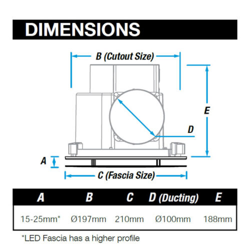 The Ventair Airbus 150 Exhaust Fan is a great size for toilets, laundries and powder rooms. This ceiling exhaust fan is a miniature version of the popular airbus range and has the same modular design. It’s side ducted for easy connection to 100mm ducting.