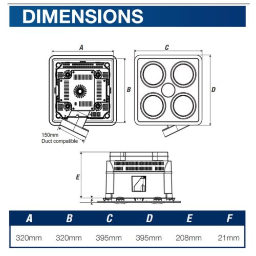 Upgrade your bathroom with the Ventair Heatforce DC 3-in-1 Bathroom Heater. Featuring a powerful DC motor for energy efficiency, this unit combines heating, lighting, and ventilation in one sleek package. Ideal for small to medium-sized bathrooms, it includes a modern low-profile fascia with Tri-colour LED lighting and a 150mm side-duct with back draft stopper. The installation process is straightforward and convenient for electricians, including an external grille and cut-out template.