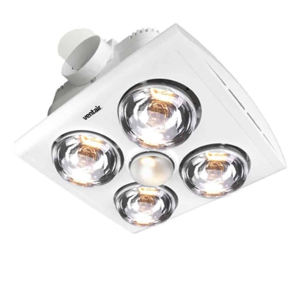 The Ventair Klein 4 Exhaust Fan is a basic ceiling mounted exhaust fan with heat lamps and integrated light.